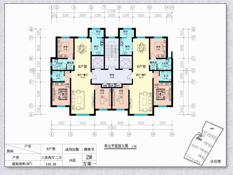 139.28平米,三房两厅二卫