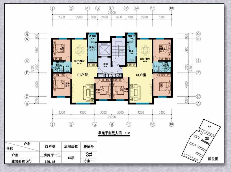 120.45平米,三房两厅二卫