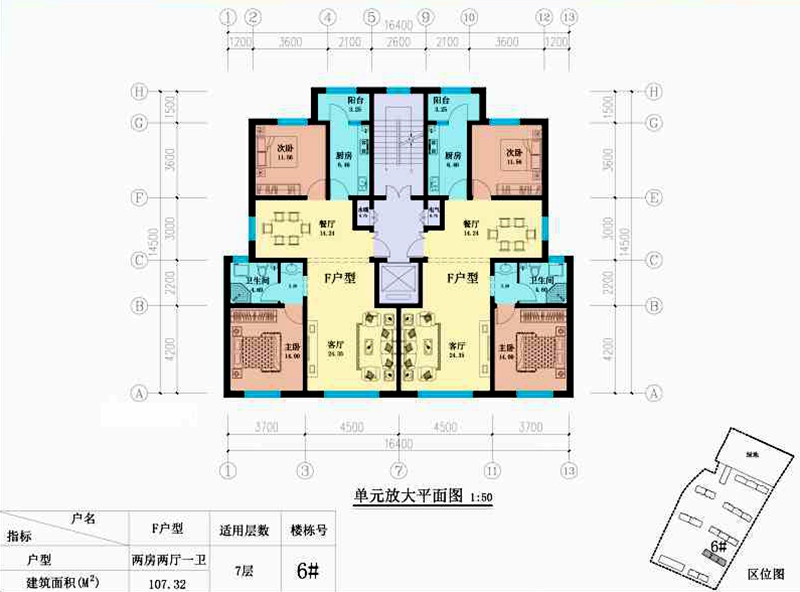 107.32平米,两房两厅一卫