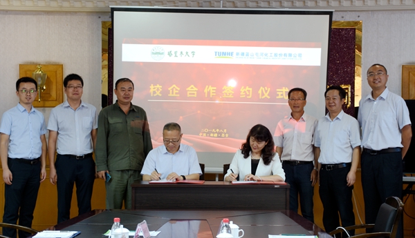 近日,球盟会公司与塔里木大学校企相助签约仪式在屯河聚酯公司举行。