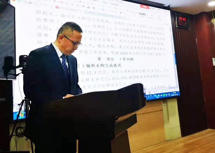 集会由采购中心总经理助理杨祖疆主持。采购中心总经理古伟代表采购中心做了题为《风雨磨砺,初心不改,坚定信心,积极有为——以高质量采购治理助推公司高质量生长》的总结报告。报告全面回首了采购中心这一年来在抗疫保供、降本增效、内控治理中取得的结果,理清思路,总结经验,检讨缺乏,并对2021年的采购事情做了详细安排。