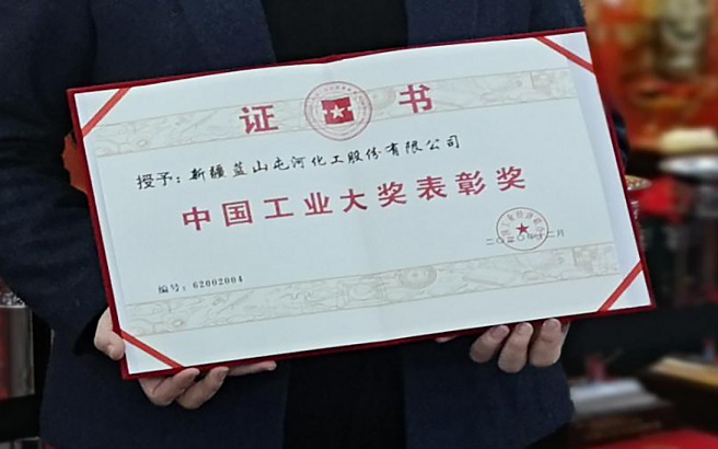 2020年12月27日上午,第六届中国工业大奖宣布会在京举行, 新疆球盟会化工股份有限公司喜获“中国工业大奖表扬奖”,是新 疆维吾尔自治区近两年来唯一一家获此殊荣的企业。中国工业经济联 合会原名誉会长、第十届全国人大常委会副委员长顾秀莲出席大会并表扬获奖单位代表,工业和信息化部原部长、中国工业经济联合会会长、第六届中国工业大奖审定委员会主任李毅中做了题为《以获奖企业和项目为模范,努力实现国家生长战略目标》的主旨讲话。工业和信息化部、财务部、国家表扬奖励办公室、国务院国资委等主要领导出席集会。新疆球盟会化工股份有限公司副总经理翟春军代表公司加入宣布会并领奖。