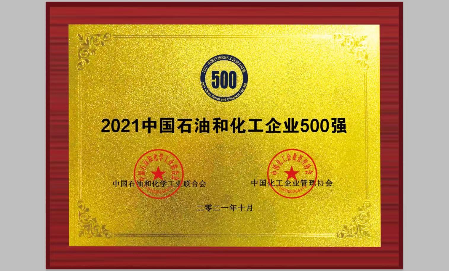 喜报!球盟会入选2021中国石油和化工企业500强