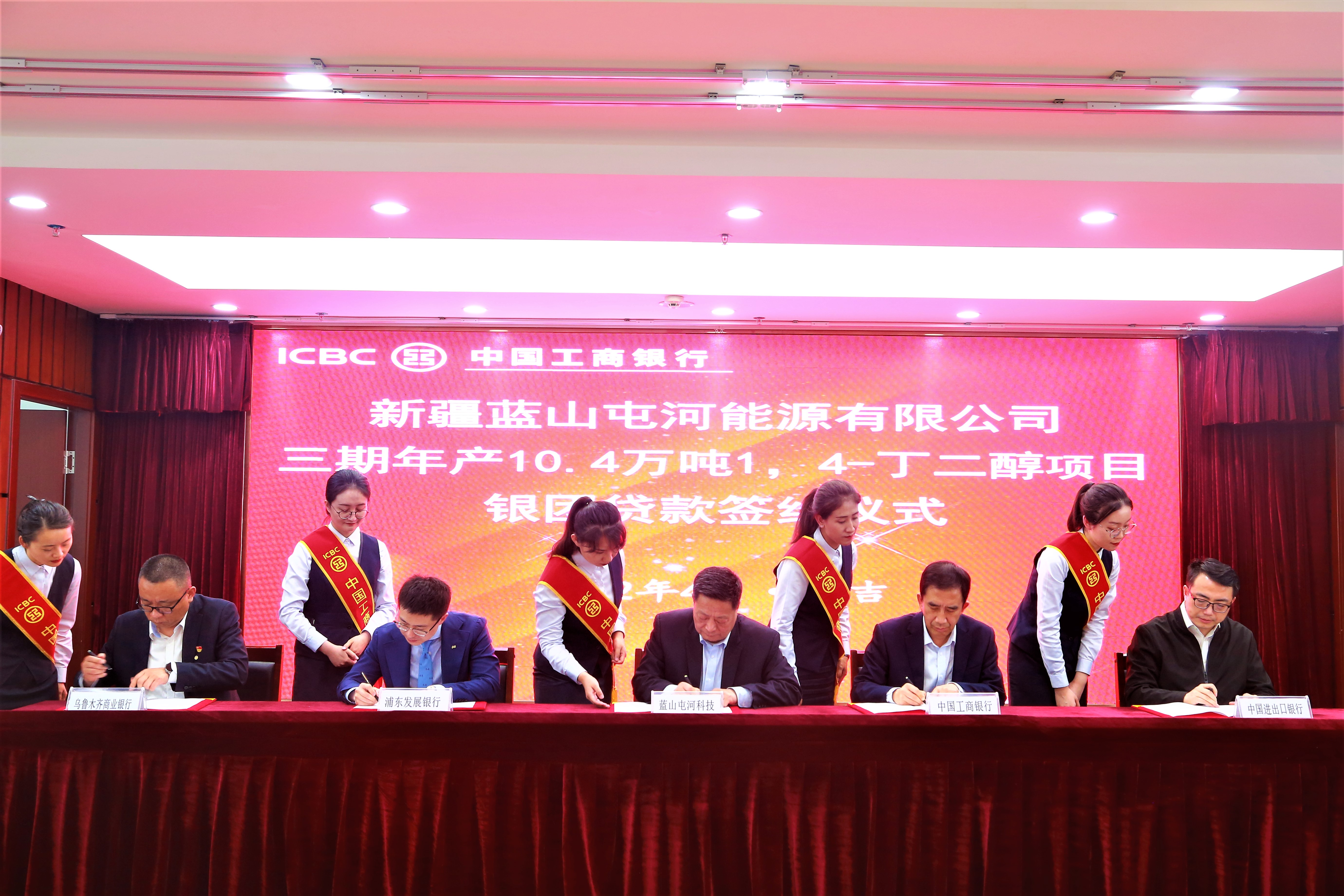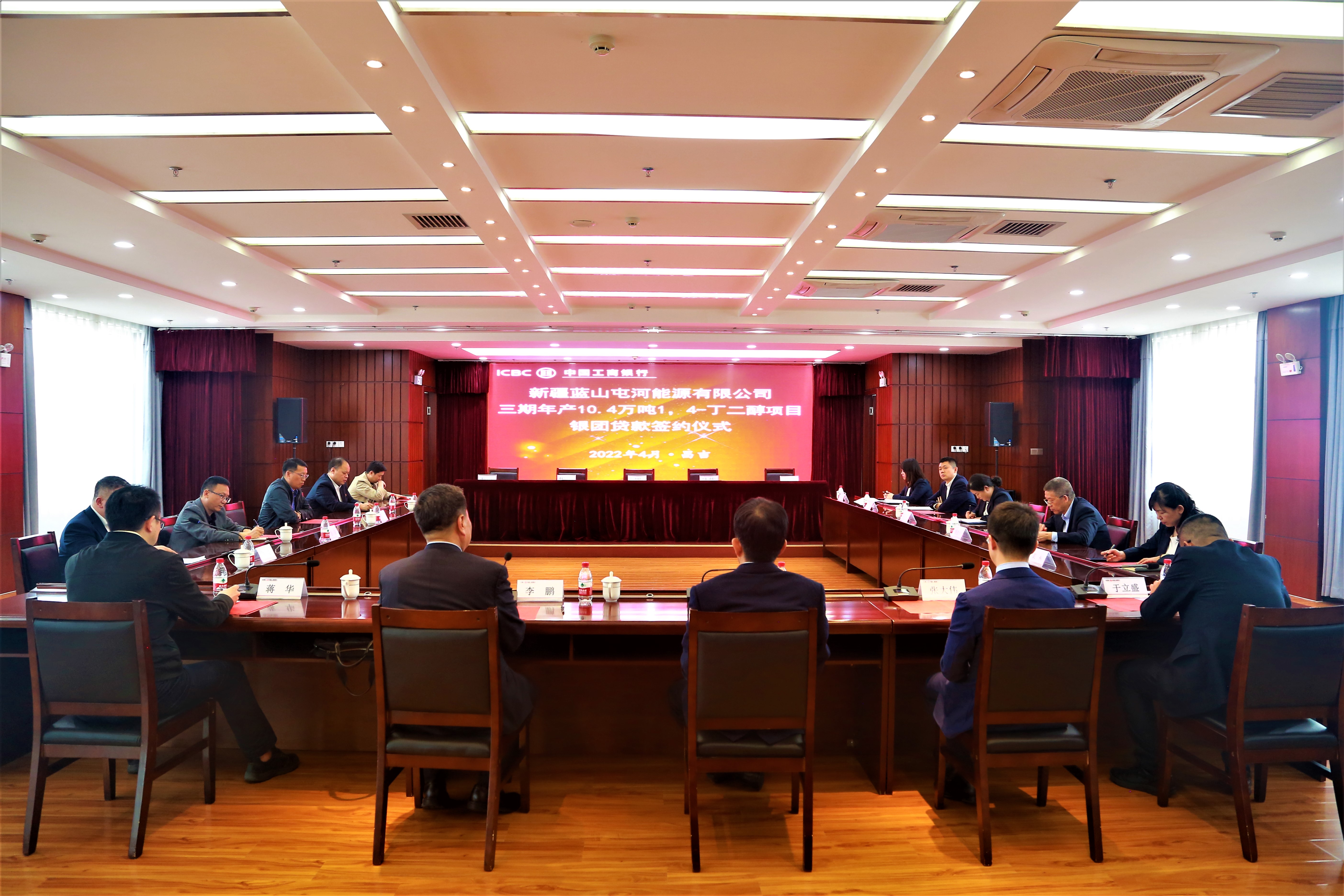 2022年4月26日,新疆球盟会能源有限公司三期年产10.4万吨1,4-丁二醇项目银团贷款签约仪式在工商银行昌吉州分行北五楼集会室隆重召开。签约仪式由本项目银团牵头行工商银行昌吉州分行组织并主持,银团加入行中国进出口银行新疆分行、上海浦东生长银行昌吉支行、乌鲁木齐银行、以及借款人新疆球盟会能源有限公司各相关领导及人员出席。